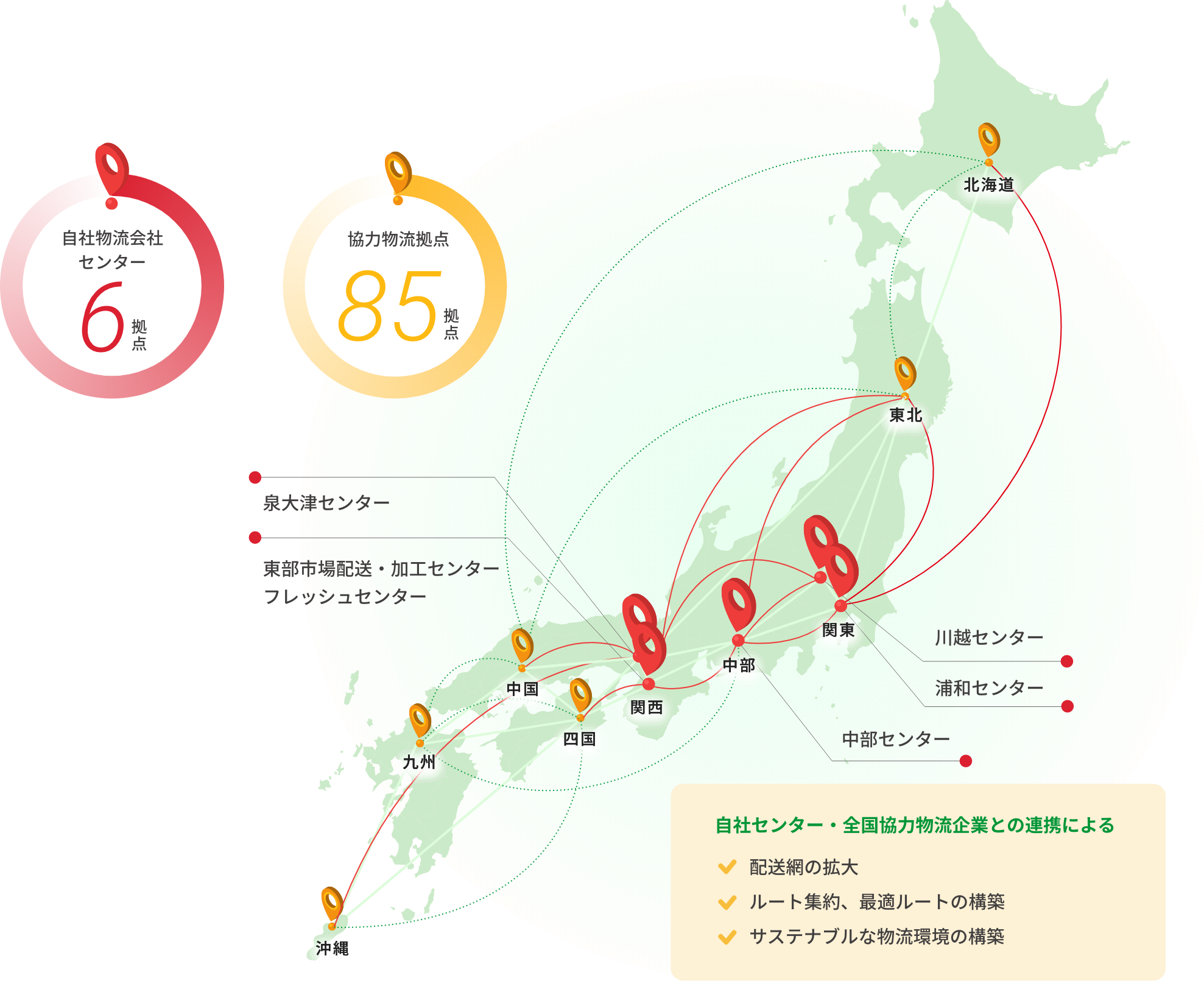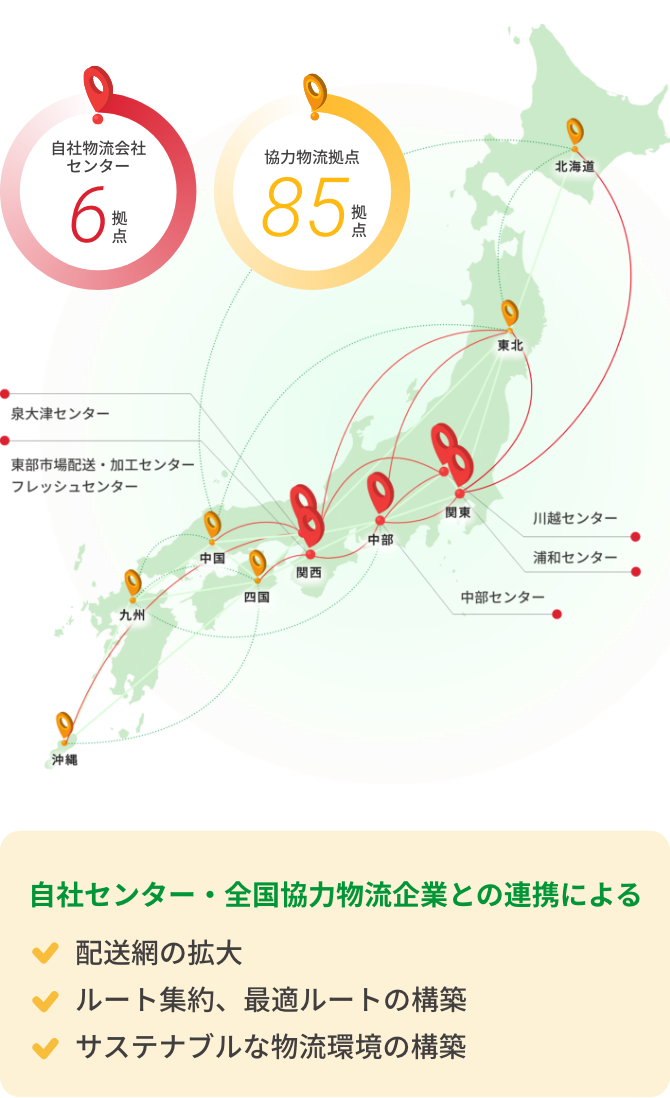 合わせて、当社の共同配送ネットワークを組み合わせる事で小回りの利いた配送にも対応しています。